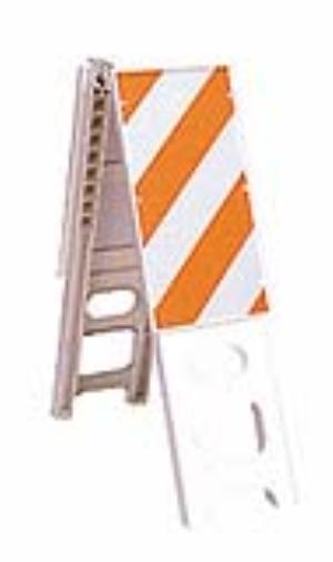 • Designed to meet requirements of MUTCD specifications for barricade devices in narrow appliacations. Panel size: 24”H x 12”W. Available in two sizes: 36” (9lbs.) & 44” (10lbs.) Recessed weight cartridge area in legs. 100% Recyclable. Lights sold seperately. NCHRP-350 certified.