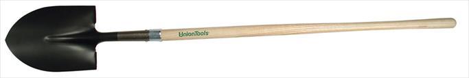 • The Union Tools round point digging shovel can be used for digging and excavation in a variety of soils. It features a heavy duty open back tempered steel blade with forward turned blade step. The crimped steel collar strengthens the handle to socket connection for added strength. This shovel will provide years of dependable service.