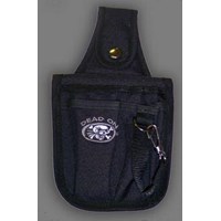 Padded and reinforced pouch easily slips into your back pocket. 4 front pockets hold tools, pencils, wallet and more. Clip loop attaches tape roll and keys. Snap loop secures to belt or bag handle.