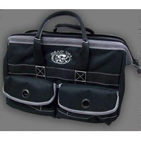 Super wide Gatemouth® design. Padded outside pockets protect tools. 13" tool organization bag. Ideal for mid-sized power tools, cords and accessories. Reinforced at all key stress points.