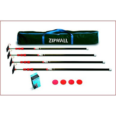 The ZipPole™ product has a baked-on finish and weighs just 1.5lbs each. They can accept plastic or cloth sheeting up to 8 mils thick and can be used with Foam Rails™, Side Packs™, Heavy Duty or Standard Zippers. Poles should be placed every 8' to 10' or closer if there is a lot of air movement. Use a GripDisk™ under each pole to secure it on smooth flooring like vinyl or wood.