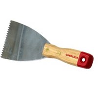These semi-flexible scrapers have V-shaped notches 5/32" wide x 1/8" deep. Straight blade is made from polished stainless steel for long life and has a wood handle.