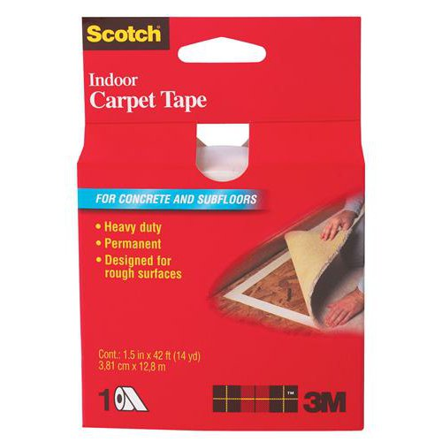 A heavy duty indoor carpet tape recommended for permanent use on concrete and subfloors. This tape can be used on all floor surfaces. This tape is not appropriate for outdoor use or for securing rugs over carpets.