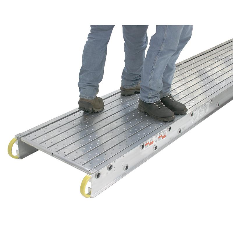 The WNS series of nestable stages provide consistent rail depths regardless of stage length, reducing trip hazards when making a continuous work platform. Made of aluminum, the handles nest inside of each other to minimize gaps between walkways. 2 person, 500 lbs. rated. Available in 14", 20", and 24" widths in lengths from 12' to 24'.