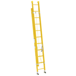 The 9500-2 All-Fiberglass Extension ladders are ideal in highly-corrosive environments. Where most fiberglass extension ladders have aluminum rungs, the 5900-2 series has unique box-beam rails that are connected with a fiberglass pultruded rung. Nylon plugs interlock the entire rung-to-rail connections. Two heavy duty guide brackets are secured to the top of the base section for ease of operation. Thick rubber treads and spur plates provide a solid foundation at the foot. These ladders bear a duty rating of 300 pounds