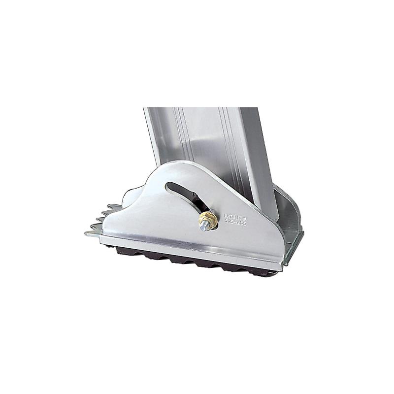 The D1500-1 series are one-section aluminum straight ladders with a duty rating of 300 pounds. The exclusive ALFLO rung joint means TWIST-PROOF performance every time. The side rails are extra heavy duty I-beam rails and the aluminum D Traction-Tred rungs are slip resistant. The rugged shoe rests flat or is held in spur position with the Shu-Lok feature for use on hard or penetrable surfaced.
