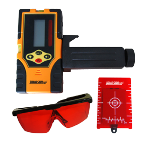 • Universal Laser Detector Kit has everything you need on the job site to detect Red Rotary Laser Level Beams. Johnson Level has combined the Model 40-6715 one sided laser detector with a magnetic floor target and red laser beam enhancement glasses so you are ready for detecting rotary laser level beams with horizontal and vertical references. The 40-6715 laser detector features high sensitivity, a double-faced display, low power consumption, good reliability and easy manipulation. It can be used with most types of rotating laser levels.