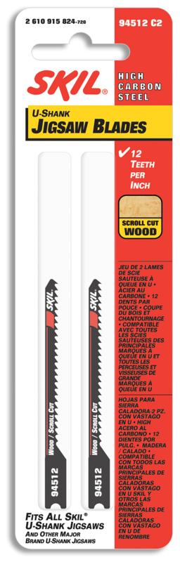 2 piece 2-3/4 In. 12 TPI Scroll Wood Cutting U-Shank Jig Saw Blade