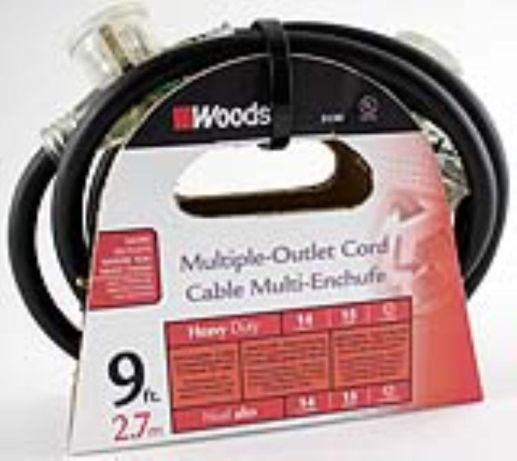 Cord connector configuration NEMA 5-15R x 3, spaced 3 ft apart