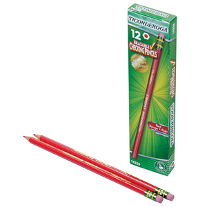 • Ticonderoga Erasable Colored Checking Pencils have brilliant, non-fading, erasable colors.
