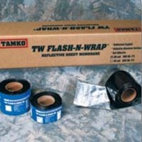 TAMKO® TW FLASH-N-WRAP® 25 is a ?exible self-adhering rubberized asphalt sheet membrane with a re?ective aluminum surface ?lm and a removable treated release ?lm on the adhesive side.