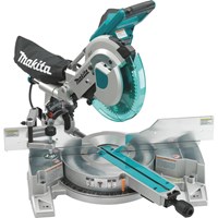 Makita changed the game with the 10 in. Dual Slide Compound Miter Saw with Laser (model LS1016L). With a crown molding cutting capacity of 6-5/8 in. (vertically nested), the LS1016L has the largest crown-cutting capacity in its class. The LS1016L has a patented 4-steel rail sliding system that further increases rigidity to produce superior cuts, and the exclusive 6 linear ball bearings are engineered for smooth, adjustment-free, "dead-on" accurate cuts. Another key point of difference is the direct drive motor with soft start, which delivers smoother start-ups and constant power, with no belts to slip or replace. In addition, the electronic speed control maintains constant speed under load for smoother, higher-quality cutting. Large Cutting Capacity, Increased Accuracy The LS1016L has an innovative direct drive gearbox and patented retractable guard system engineered for increased vertical cutting capacity. At 6-5/8”, the LS1016L has the largest crown molding cutting capacity (vertically nested) in its class. The patented retractable rear guard also provides the LS1016L with 4-3/4” baseboard cutting capacity (vertical), and a 12” capacity at 90°. In addition, the exclusive 6 linear ball bearings deliver smooth, solid and adjustment-free “dead-on” accurate cuts. The saw also has a patented 4-Steel Rail Sliding System that further increases rigidity to produce superior cuts, as the four steel rails provide less deflection. The result is a larger cutting capacity and more accuracy. Precise Miter and Bevel Cuts The LS1016L has an exclusive 4-3/4” sliding fence system, with four sliding fences featuring upper and lower fence adjustments for more precise miter and bevel cuts to accommodate a variety of cutting applications. The saw miters 0° to 52° left and 0 to 60° right, with positive stops at 0°, 15°, 22.5°, 31.6°, and 45° (left and right). The dual rear-handle bevel lock is easily accessible with adjustments 0° to 45° (left and right), with positive stops at 22.5°, 33.9°, and 45° (left and right). Precision adjustments are made easier with dual front bevel scales for improved visibility. The easy one-touch (push in & turn) miter lock system is designed for accurate adjustments and increased efficiency. Ergonomic and Compact Design In addition to the large cutting capacity, power, and accuracy, the LS1016L offers a range of convenience and ease-of-use features. The LS1016L has less weight and the most compact design in its class, so it’s portable and more easily transported. In addition, the patented 4-Steel Rail Sliding System requires 2” less rear space than competitor dual sliding miter saws. The see-through blade guard system provides greater visibility of blade and line of cut, and has a one-step blade change process for increased efficiency. The ergonomic rubberized horizontal D-handle design has a better fit and added comfort, and the large trigger switch is designed for easier operation.