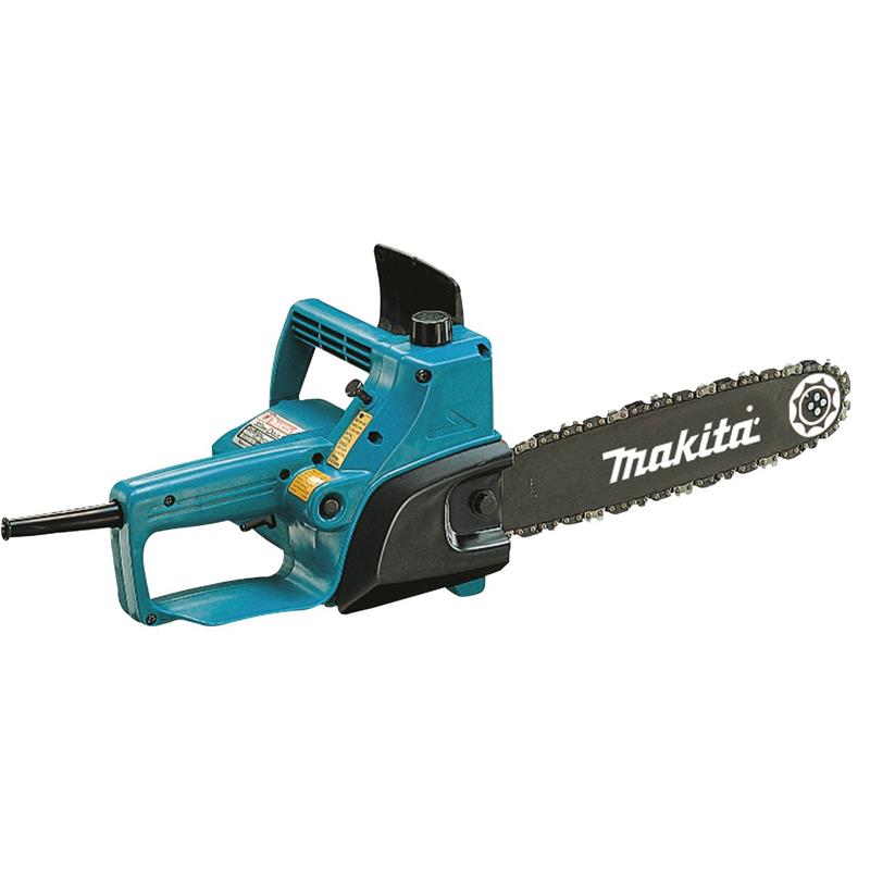 The Makita 5012B Electric Chain Saw is compact with less weight and engineered for efficient operation. The 11.5 AMP motor delivers 5,500 FPM chain speed for extremely fast cutting ability. Additional features include a built-in overload protector for added durability, and a durable poly-carbonate housing for long lasting performance. The 5012B has an 11-3/4 in. guide bar, with an overall length of 22 in. and weighs only 9.5 lbs. (w/o bar and chain).