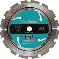 The Makita Polycrystaline Diamond Tipped Saw Blade is designed to work with 12" miter saws to make cuts in fiber cement materials. The PCD tips make the blade last 30 times longer than a standard carbide tipped blade. Those tips combined with the heat vents allow the blade to last 2.5 times longer than a standard blade.