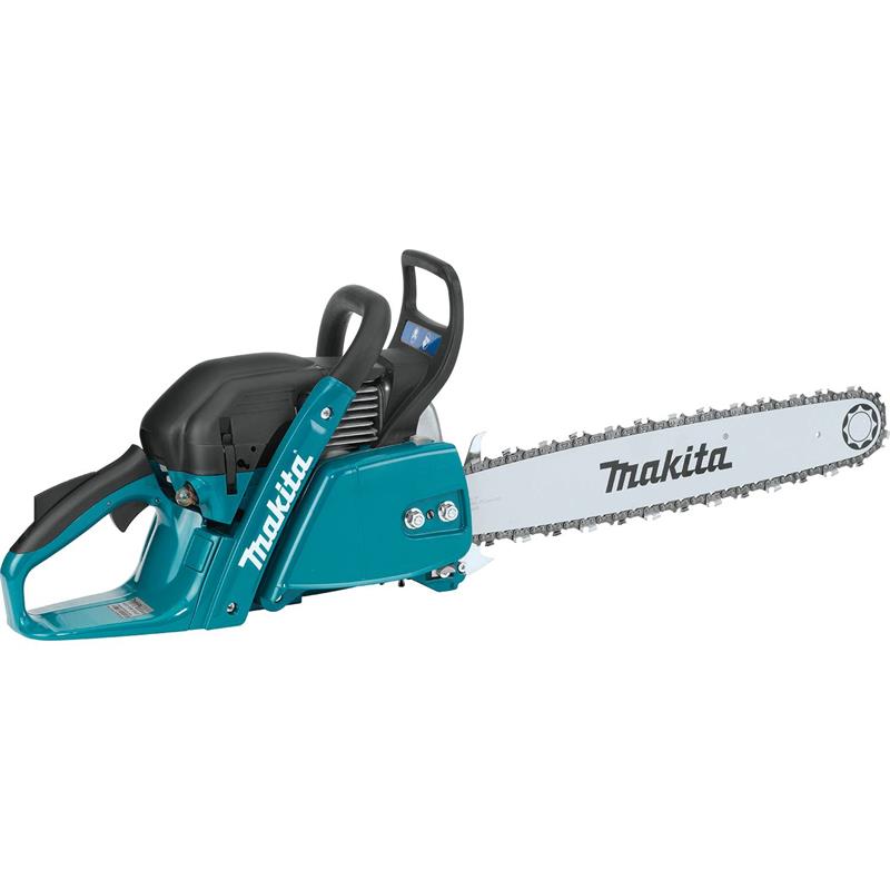 The Makita 20” 61cc Professional Chain Saw (EA6100P53G) combines a high power-to-weight ratio with easier starts and less vibration for a full range of applications. The 61cc engine delivers 4.6 HP, with an Easy Start spring-assisted starter, and heavy duty air filter system for extended filter life and improved durability. The Touch & Stop single-lever operation is engineered for immediate shut-off for added convenience. Additional features include an easy-to-clean chain compartment for efficient clearing of chips, even when rip cutting, and the advanced vibration dampening system that is engineered to reduce vibration.