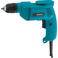 The Makita 6408 3/8 in. drill has a powerful 4.9 AMP motor with variable speed (0-2500) for a range of applications. Convenience features include a keyless chuck for fast and easy bit installation and removal, and an in-line design with a large trigger switch for easy operation. The 6408 has a lower decibel rating (79dB) for quieter operation.