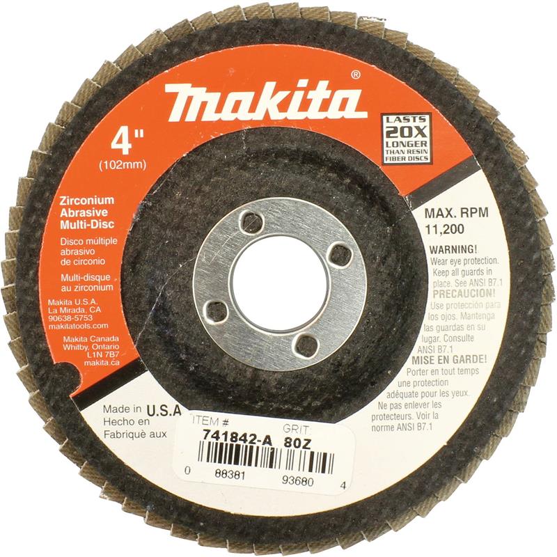 Makita 4" Abrasive Multi-Disc is designed to work with Angle Grinders for material removal and surface preparation. The Zirconium abrasive grain runs cooler and lasts longer than aluminium oxide. These wheels work on a variety of materials including metal, wood and plastic.