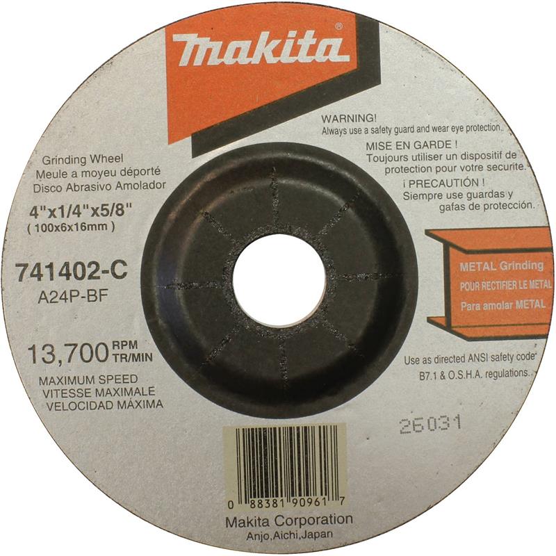 Makita 4" Abrasive Grinding Wheels feature an innovative grain structure engineered for optimum performance, efficient material removal and longer wheel life. These type 27 wheels are constructed of high quality aluminum oxide abrasive grains for increased performance and added durability. These wheels are designed to be used on most 4" Angle Grinders for general grinding of ferrous metals.