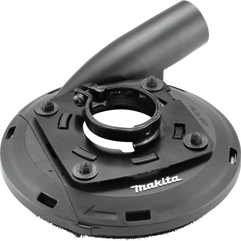 The Makita Dust Extracting Surface Grinding Shroud (195236-5) is designed to fit Makita 4-1/2 in. - 5 in. grinders. It features a spring-loaded suspension system that keeps the shroud flush to the surface during movement and compensates for blade wear. The shroud has a removable edge piece for surface work flush to edges or other objects. It also has soft brushes that help contain the dust and allow for smooth movement over the work surface. The outside diameter of the extraction port will work with most standard vacuum hose systems. The dust shroud is ideal for concrete finishing, concrete material removal and paint or surface coating removal.
